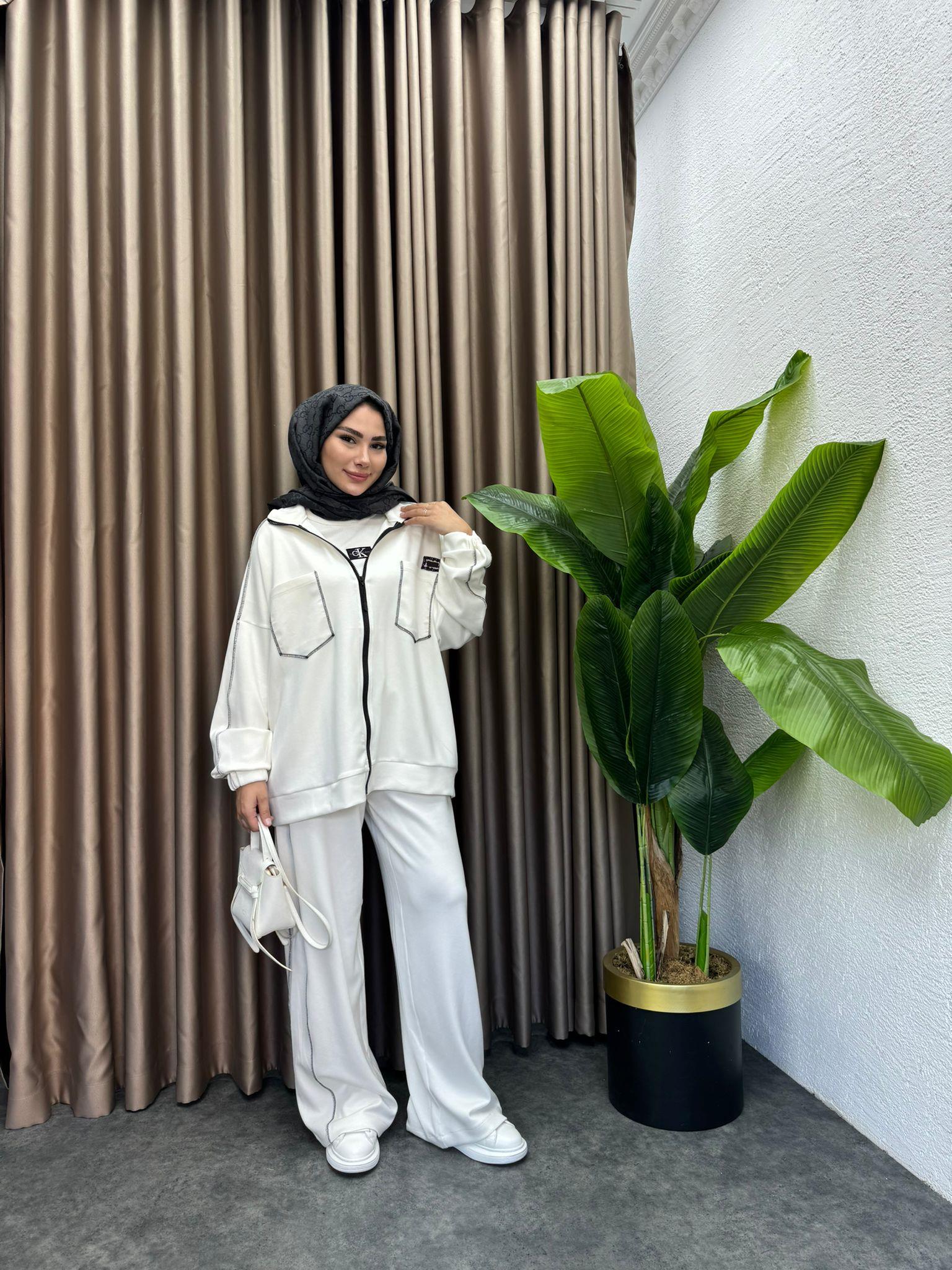 MEYSADESIGN PANTOLON TAKIM Biyeli Ters Dikişli Oysh İkili Takım Beyaz