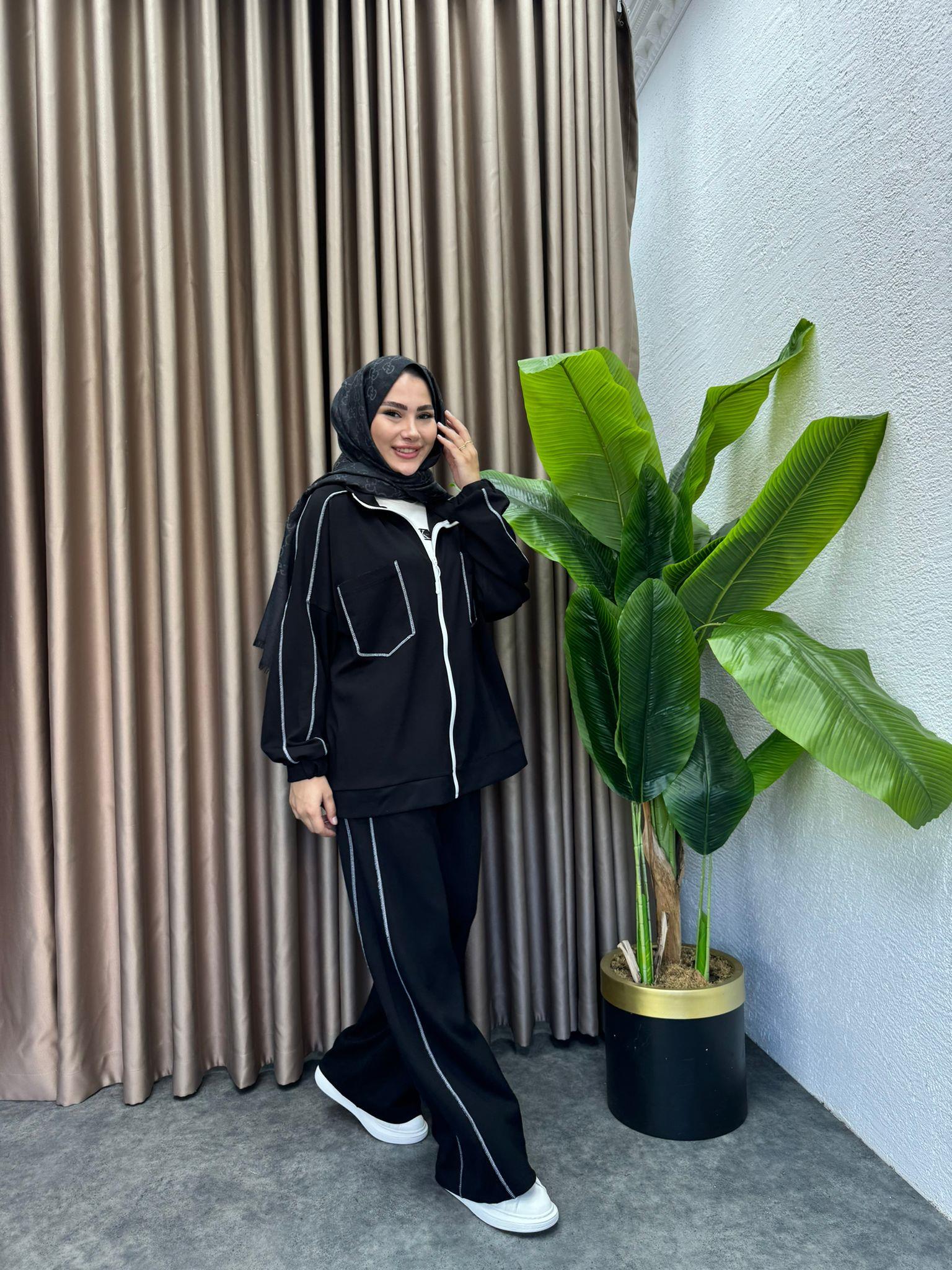 MEYSADESIGN PANTOLON TAKIM Biyeli Ters Dikişli Oysh İkili Takım Siyah