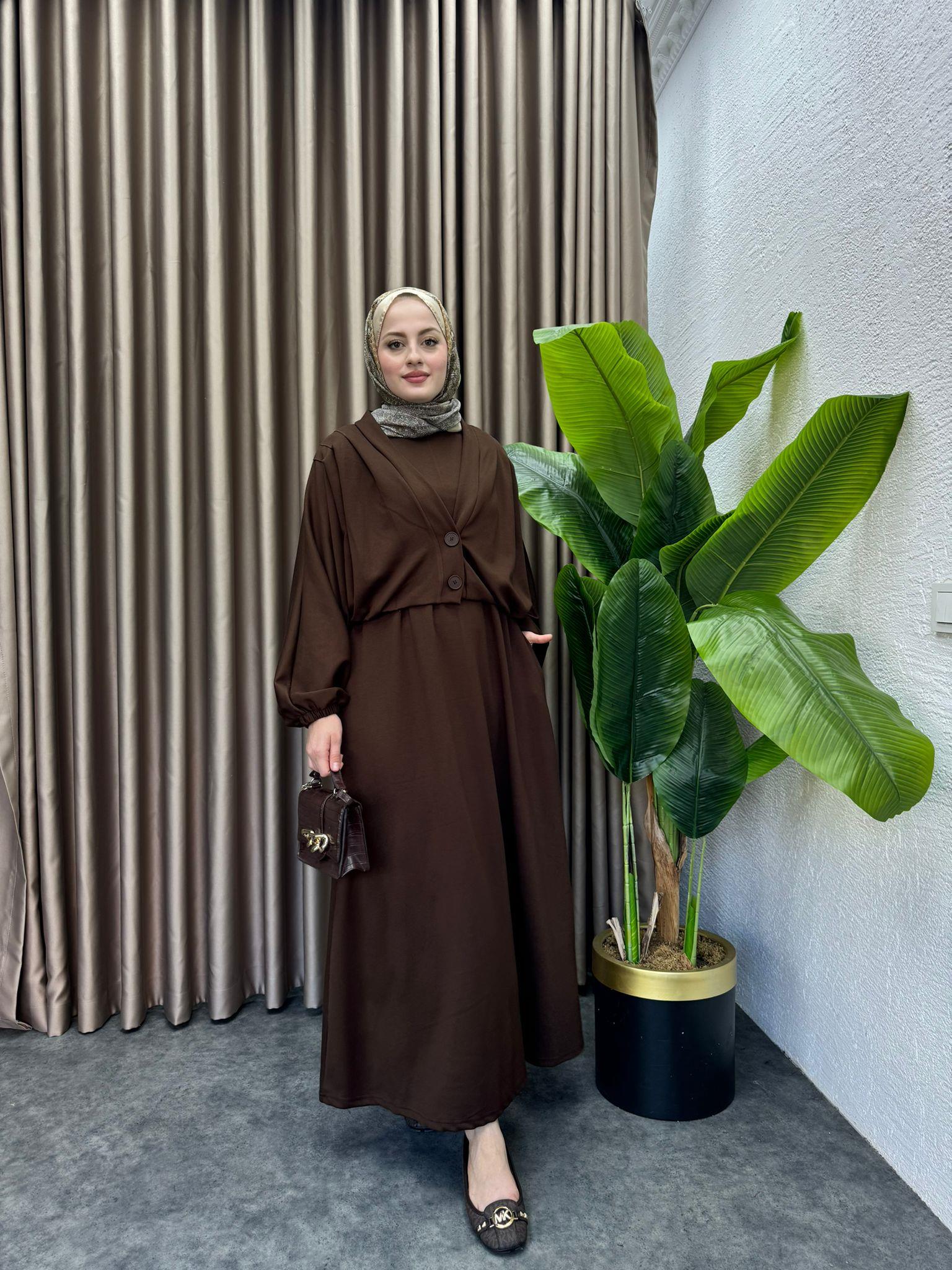 Bomber Ceketli Oysh Elbise Acı Kahve