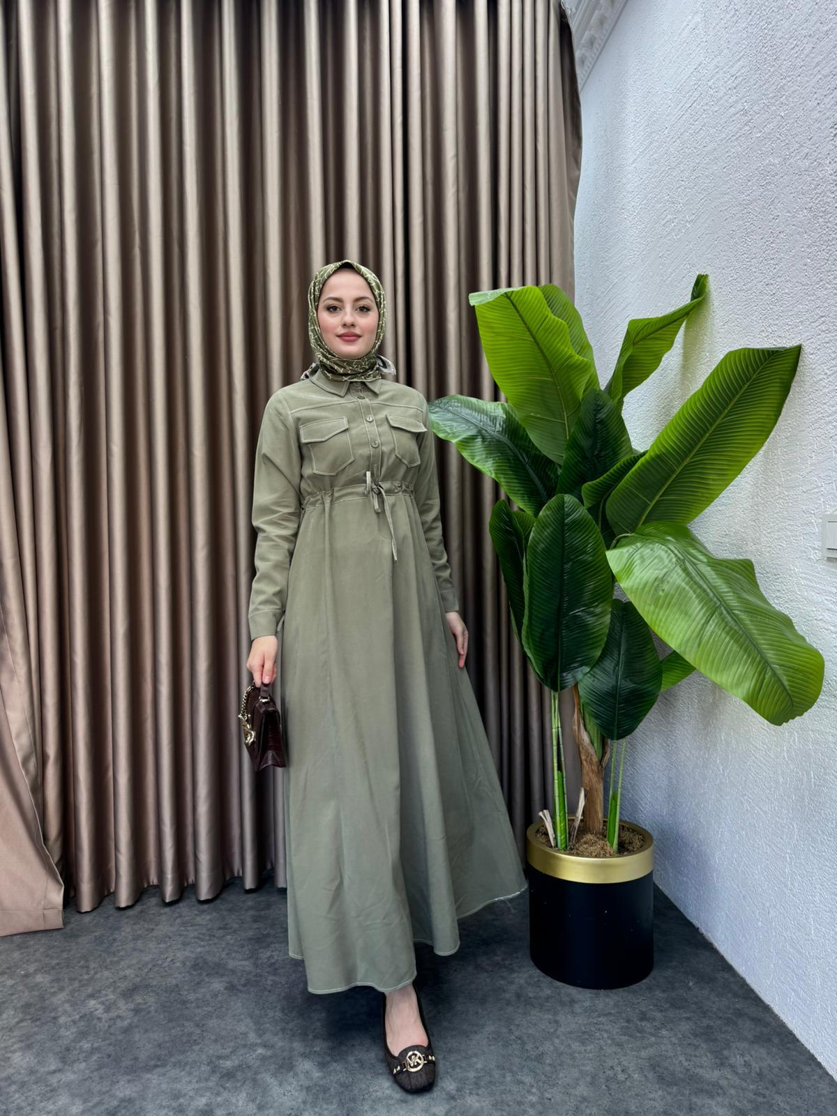 MEYSADESIGN ELBİSELER Çizgili Tensel Elbise Haki
