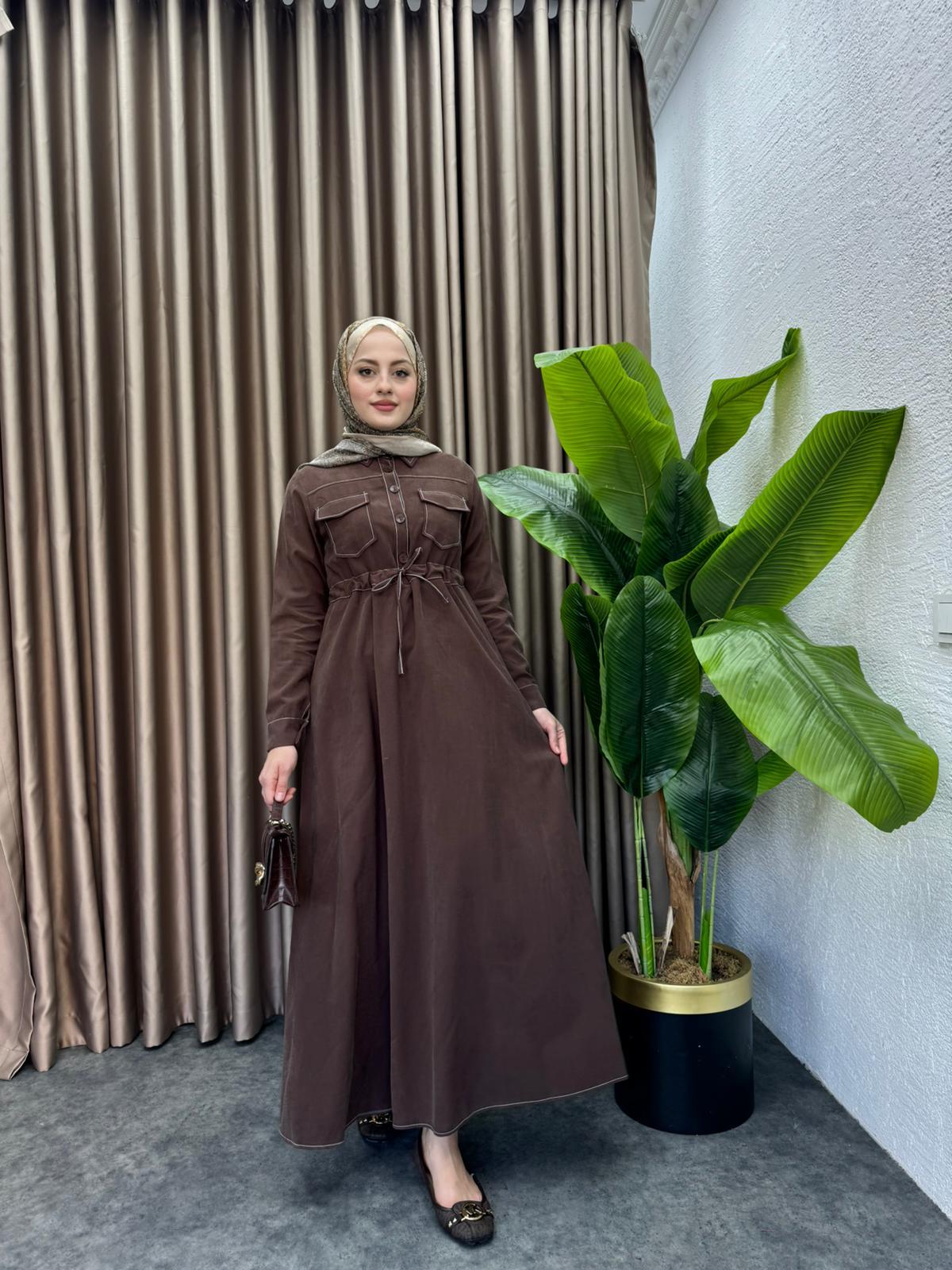 MEYSADESIGN ELBİSELER Çizgili Tensel Elbise Kahve