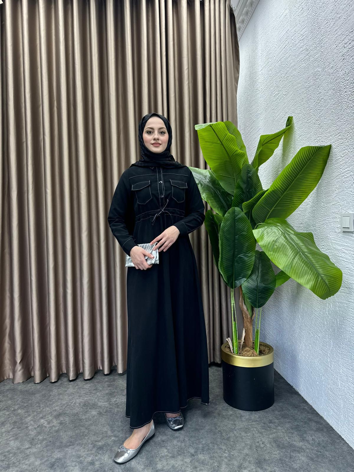MEYSADESIGN ELBİSELER Çizgili Tensel Elbise Siyah