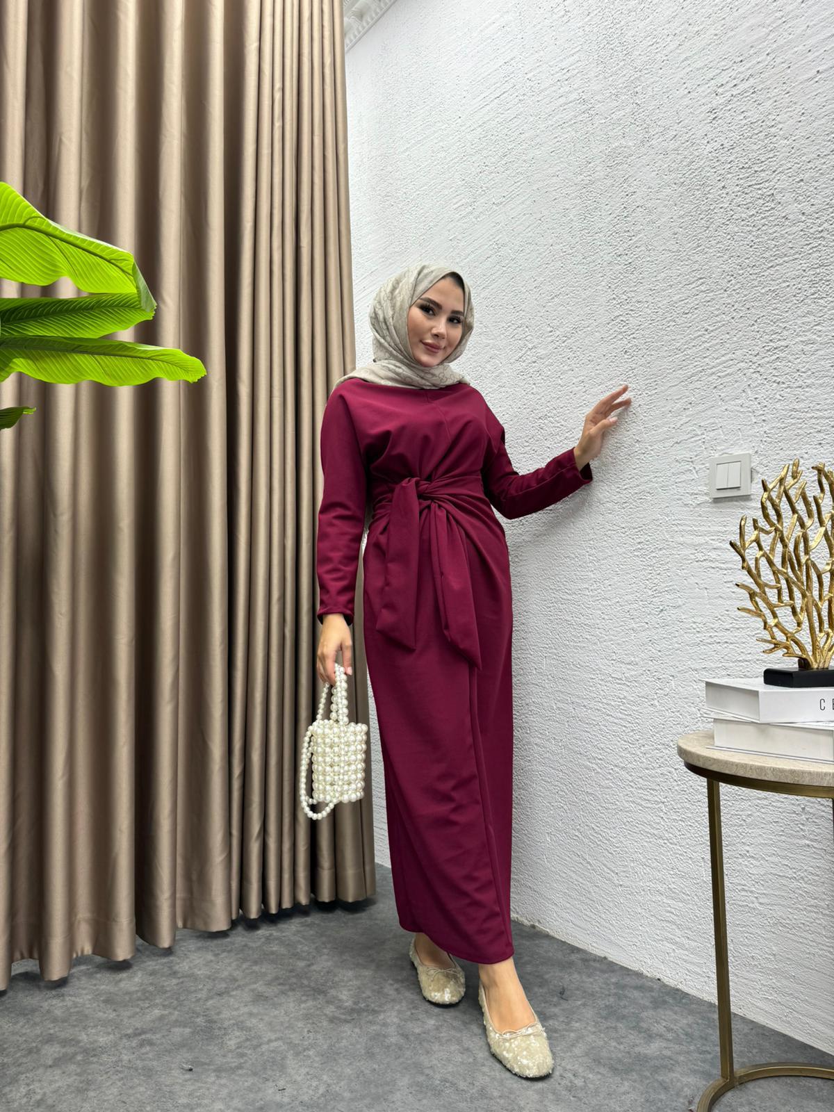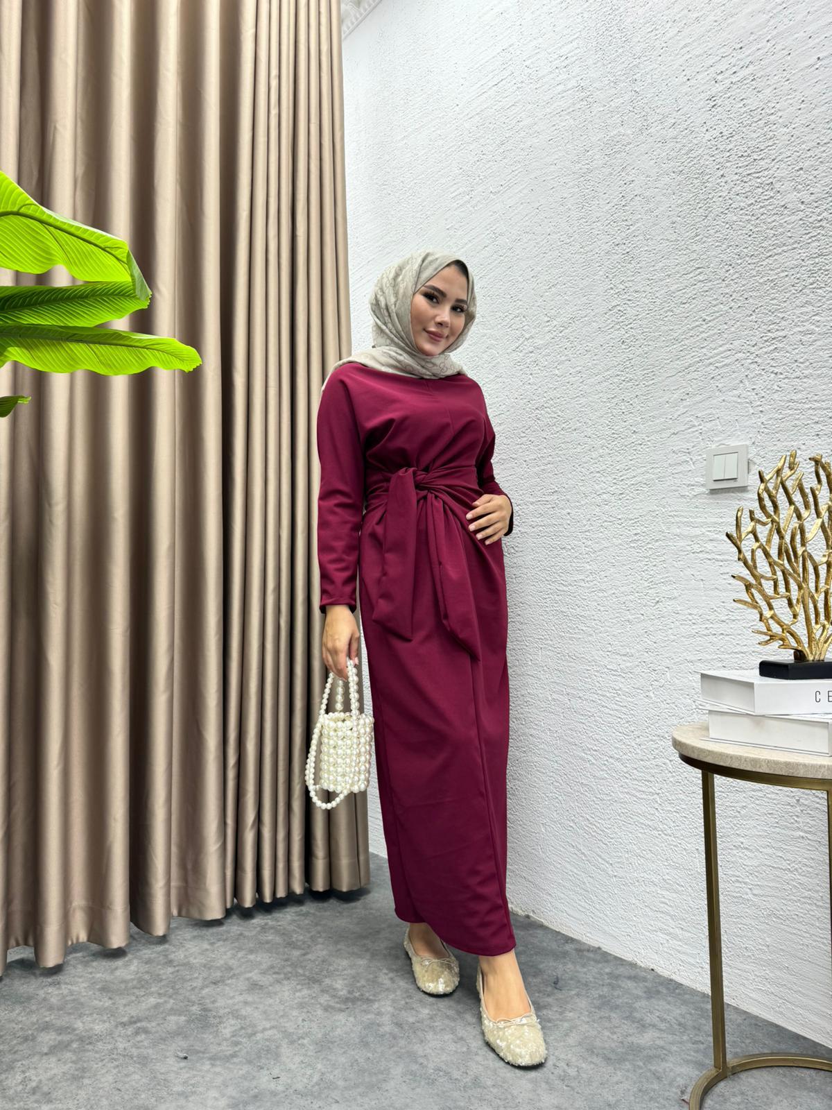 Waist-Tie Dress Crepe Dress Burgundy