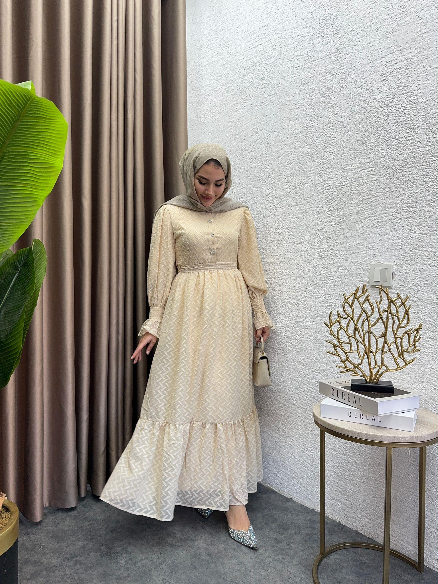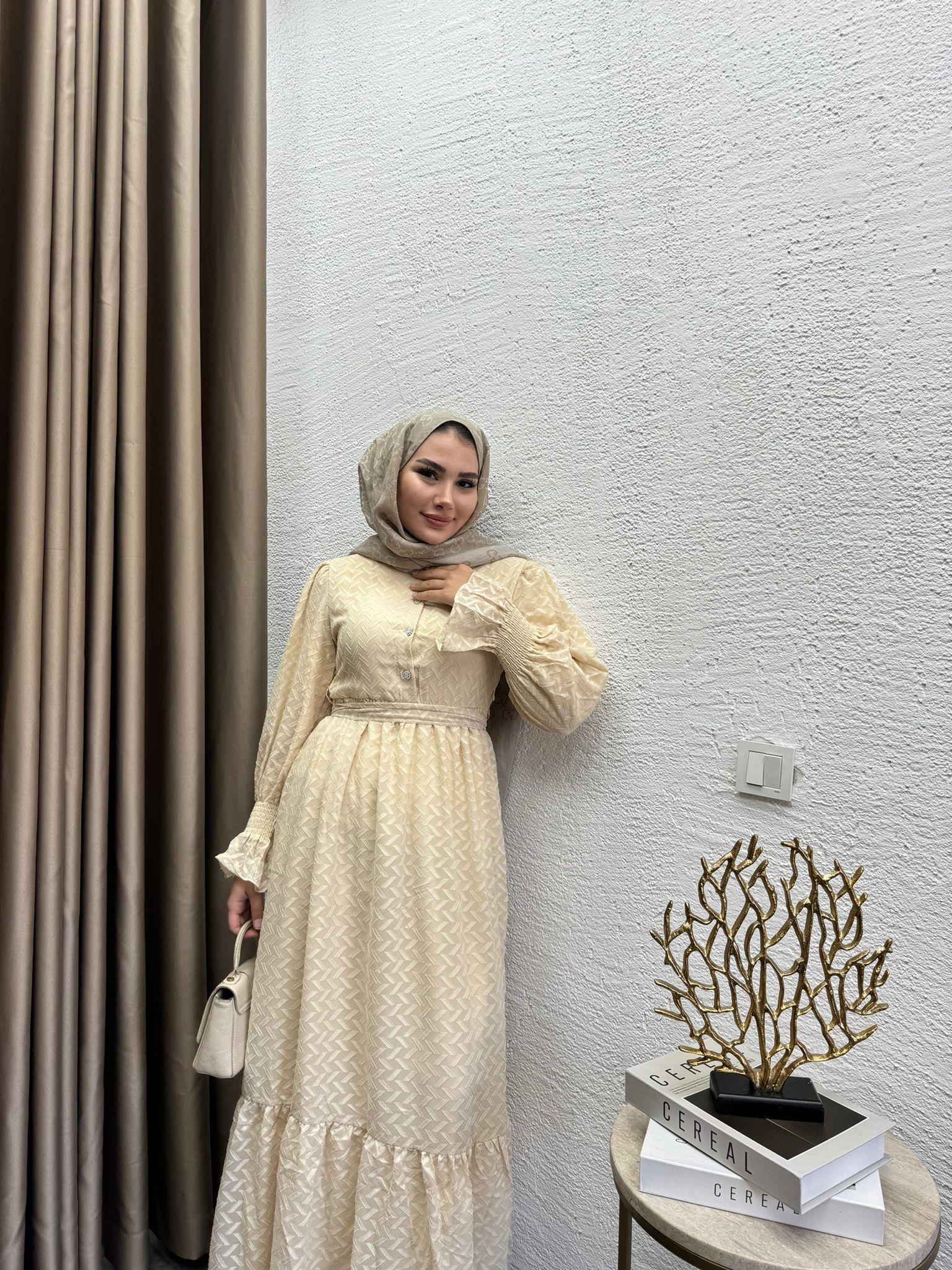Bera Patterned Chiffon Dress Beige
