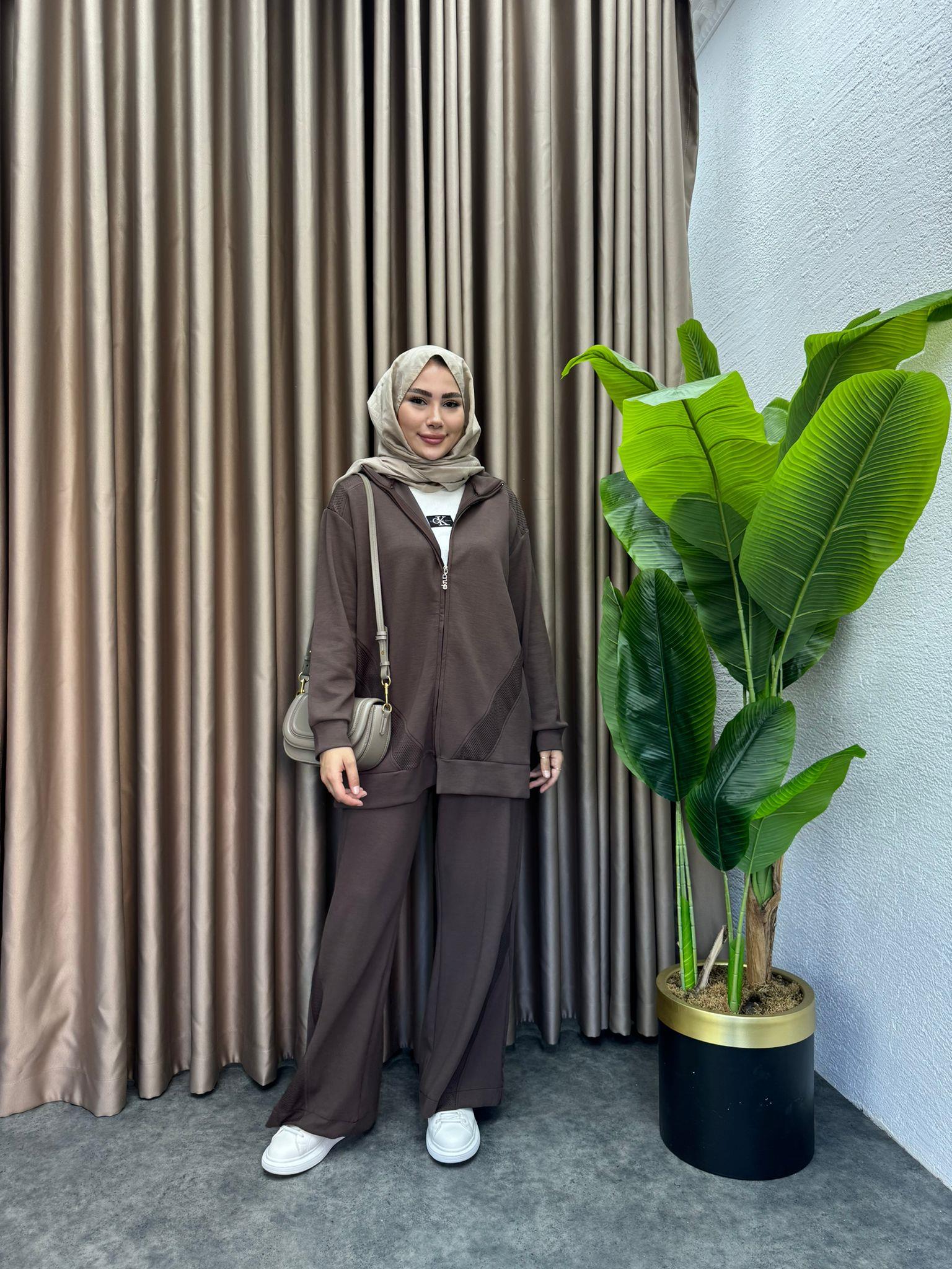 File Detaylı Fermuarlı Oysh Takım Acı Kahve