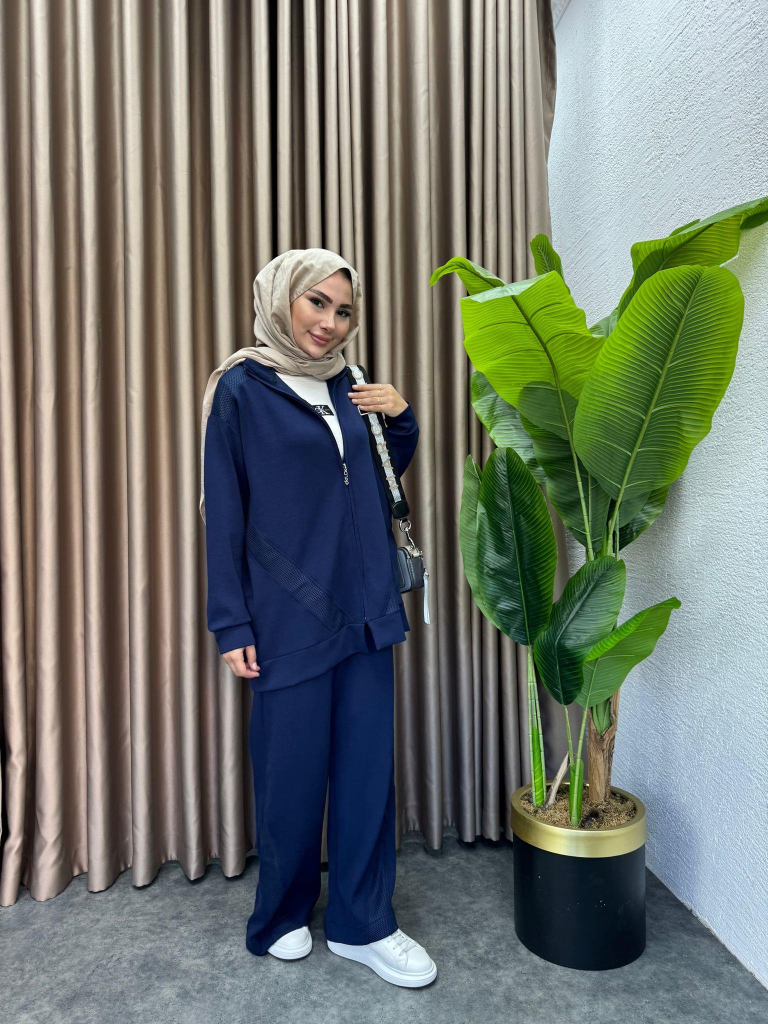 File Detaylı Fermuarlı Oysh Takım Lacivert