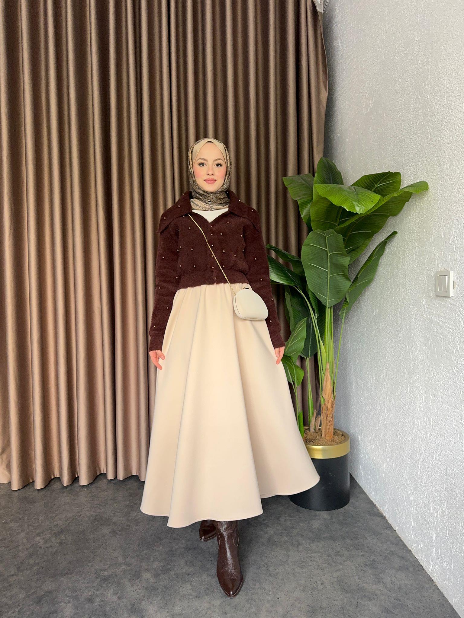 MEYSADESIGN HIRKA İnci İşlemeleri Lüx Angora Hırka Kahve