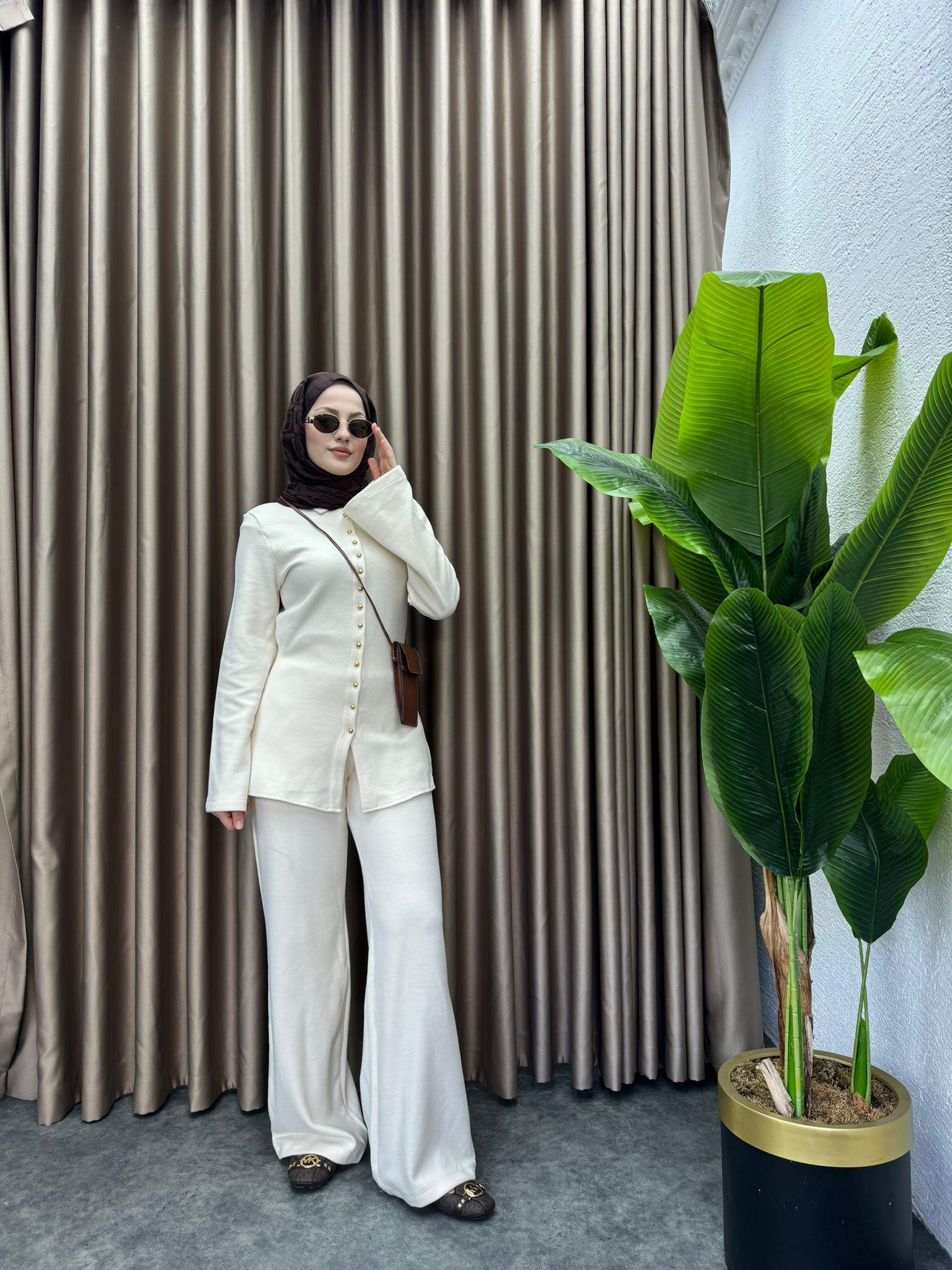 MEYSADESIGN PANTOLON TAKIM Kadife Gömlek Takım Bej