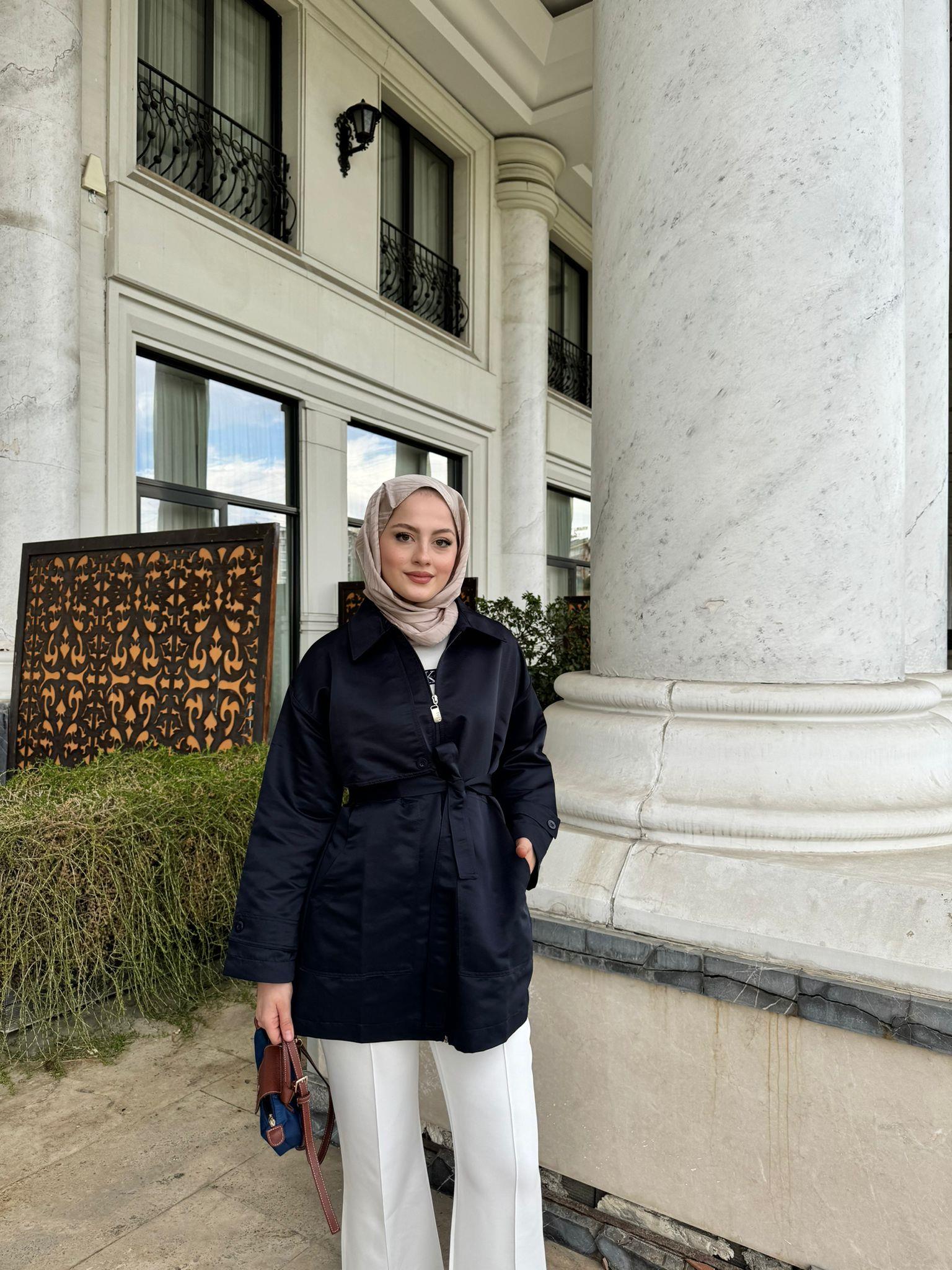 MEYSADESIGN TRENCKOT Rose Kemerli Trenckot Lacivert