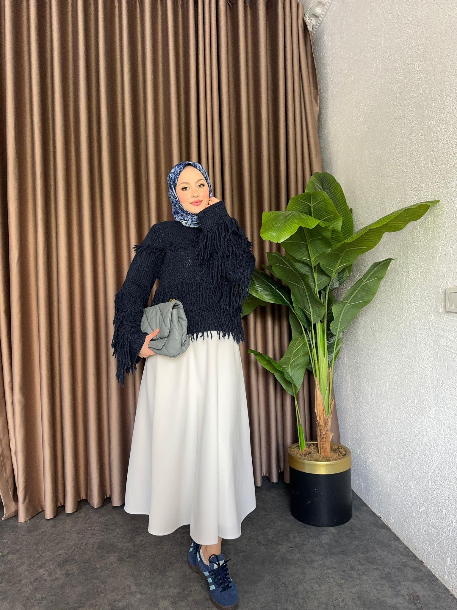 MEYSADESIGN KAZAK Saçaklı Triko Kazak Lacivert