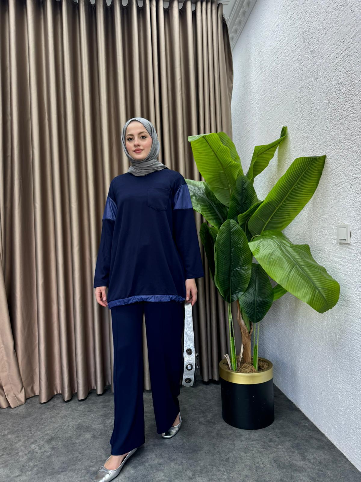MEYSADESIGN PANTOLON TAKIM Şeritli Oysho İkili Takım Lacivert