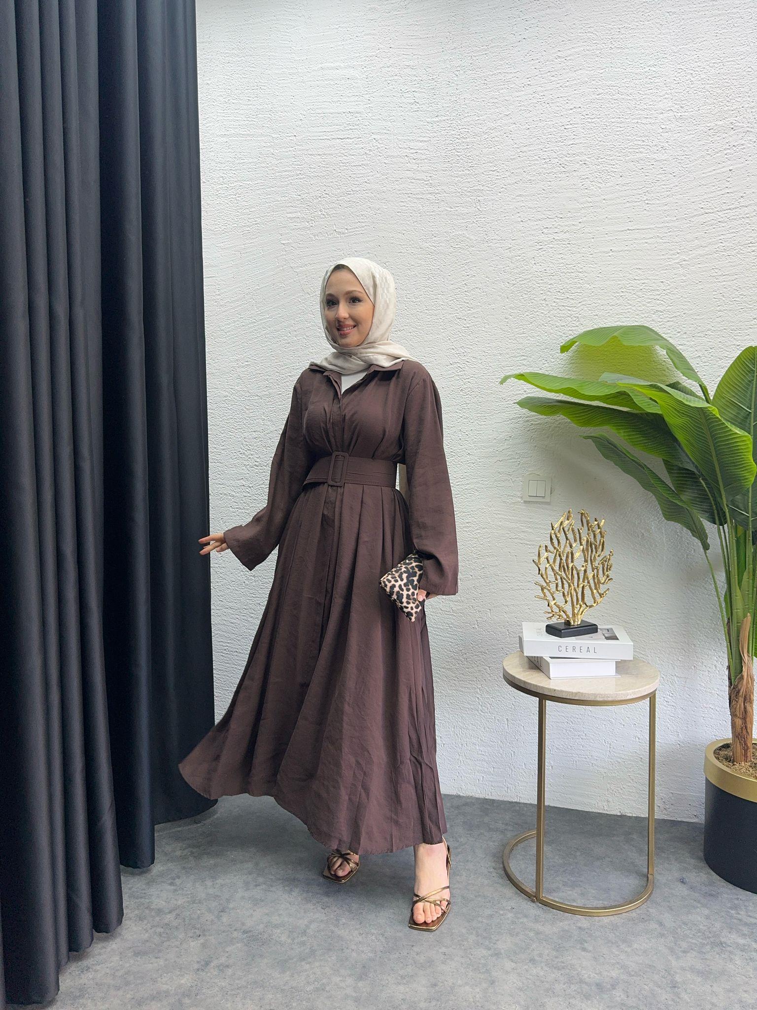 1-2 beden Boyu 135 cm Önü tamamen düğmeli Seyyar kemerli modal kumaştır