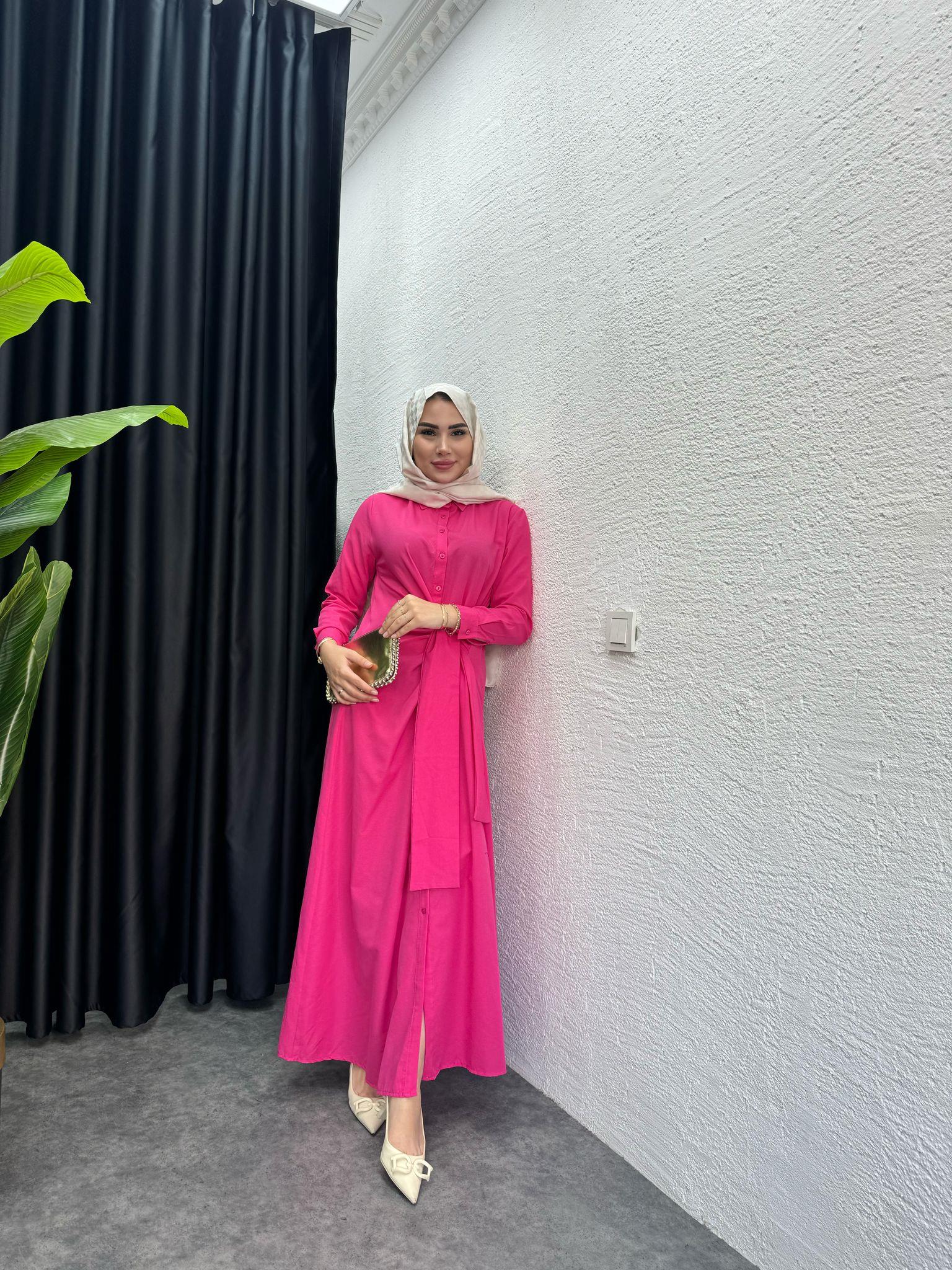 MEYSADESIGN ELBİSELER Zisy Bağlamalı Poplin Elbise Fuşya